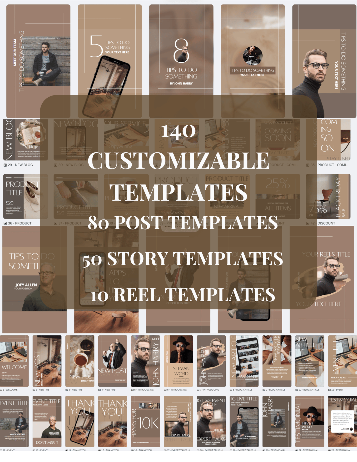 Boho Bliss: 140 Customizable Canva Templates for Instagram & Facebook